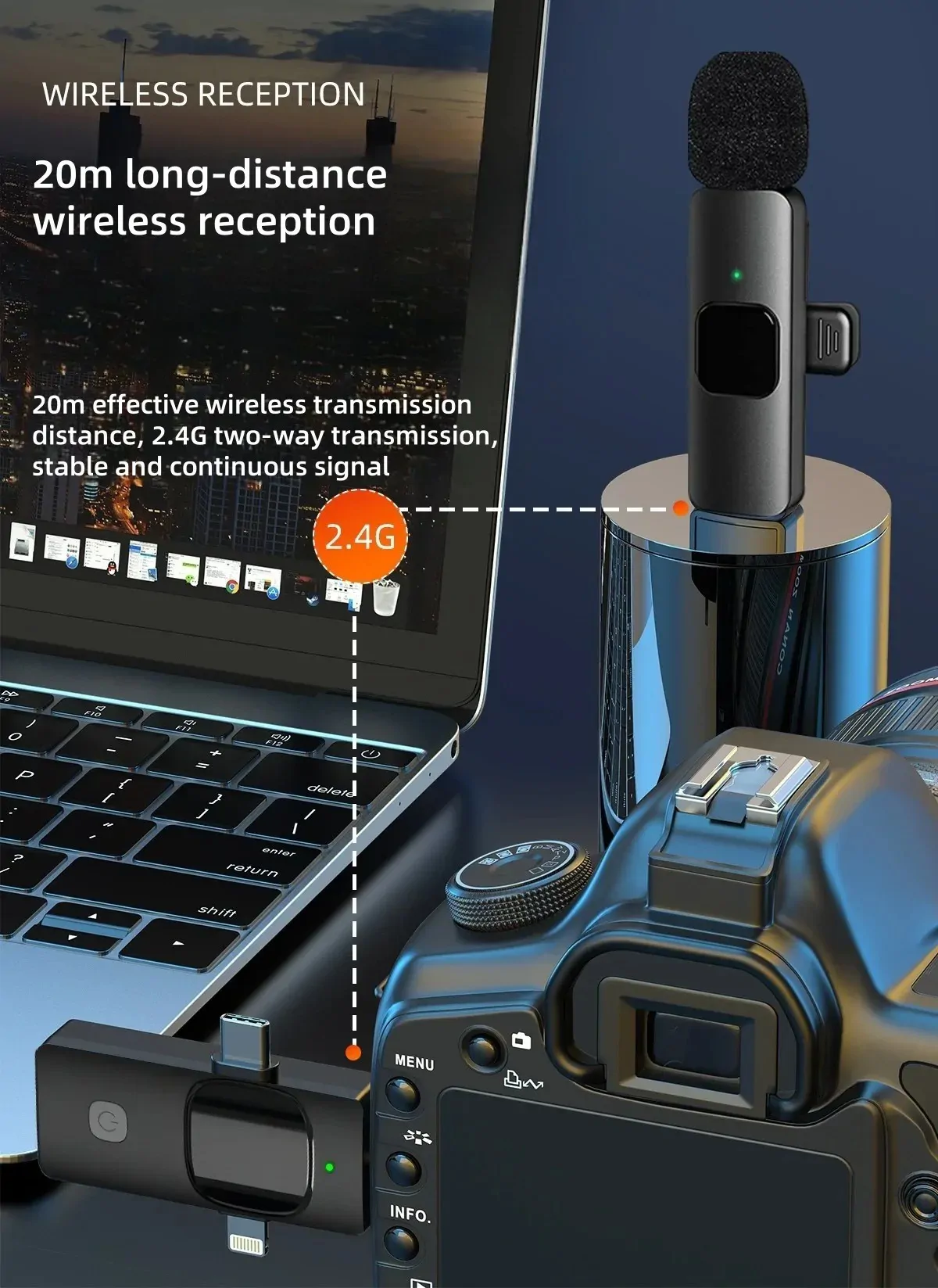 الصفحة الرئيسية اثاث ميكروفون Lavalier اللاسلكي 3 في 1 بتقنية 2.4G